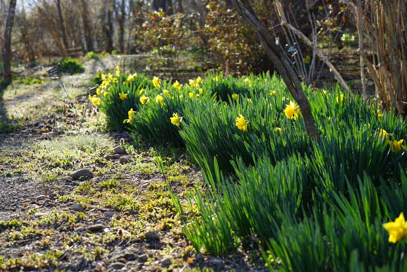 噴水池の端、スイセンもようやく咲き競い始めて春らしく...。 4/4日