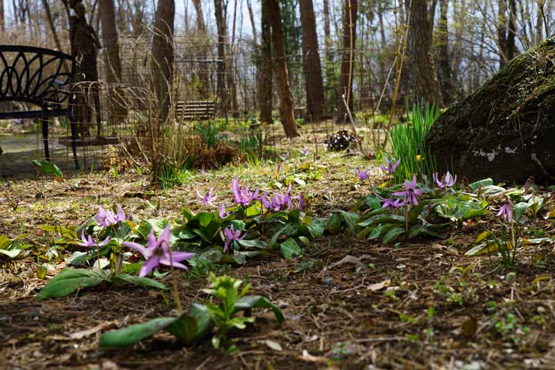 一株を植えたのはいつだったか...、西庭の片隅で少しずつ版図を拡げるカタクリ、ペースはわずかながらあがってきてはいる。 4/8日 学名:Erythronium japonicum ユリ科カタクリ属の多年草、古くは「堅香子(かたかご)」と呼ばれていた。