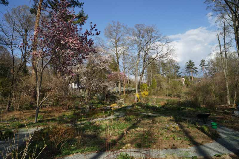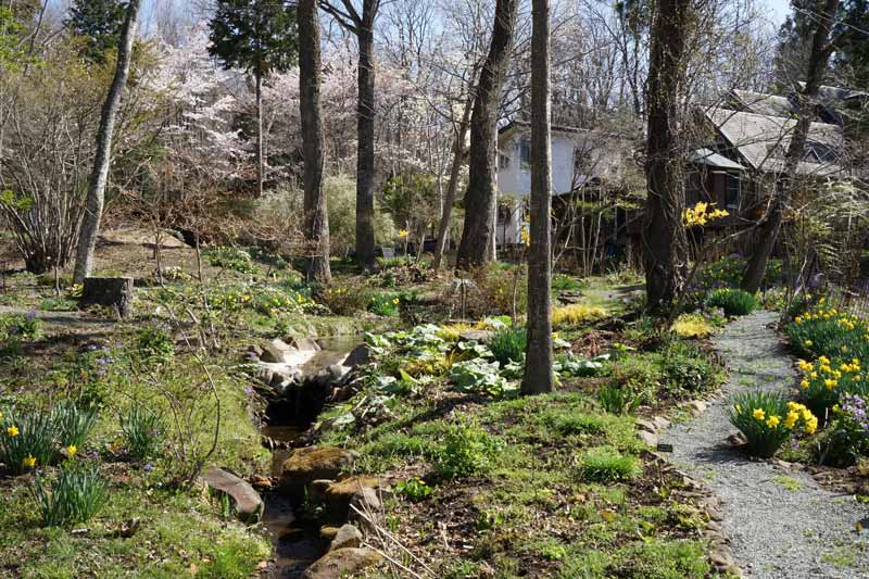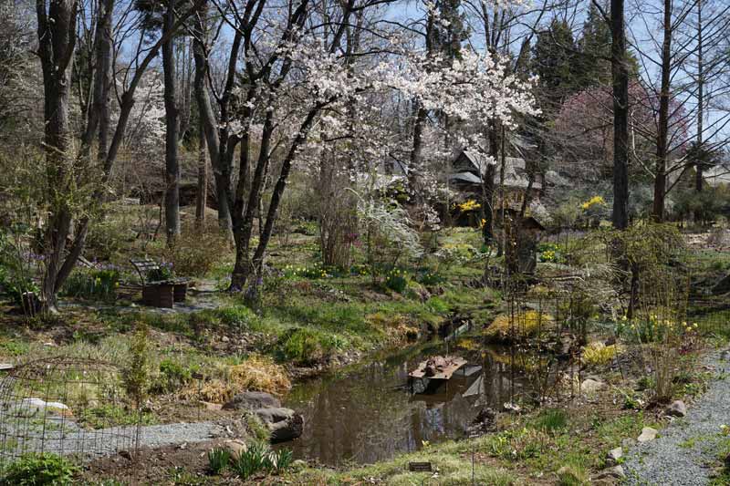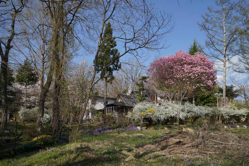 この頃は未だ木々は芽吹き始めで、西庭から母屋(POLLYANNA)やCottonweedを望める。 4/22日
