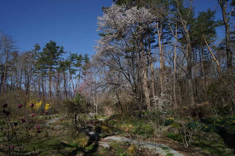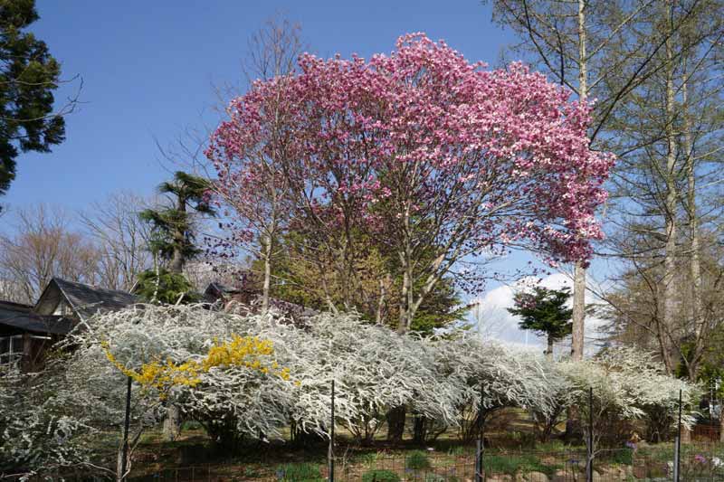 ソメイヨシノが満開を迎える頃、ユキヤナギとシモクレンの共演が始まる。 4/22日