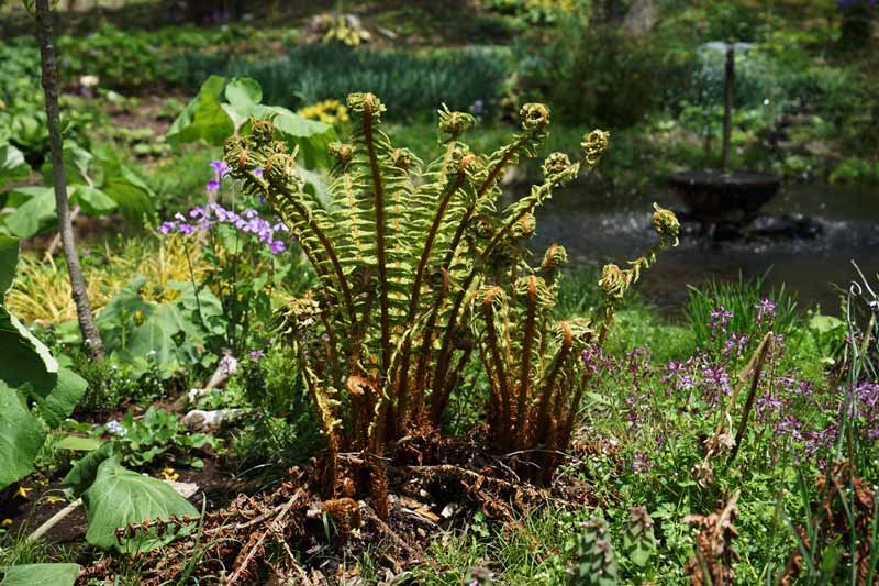 ゼンマイを伸ばし始めたオシダ、六月になると直径2mほどになる大型のシダ。 5/3日