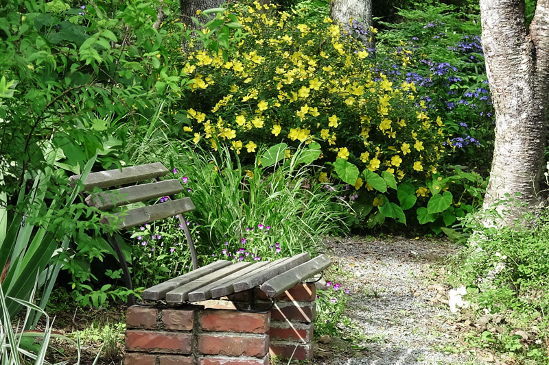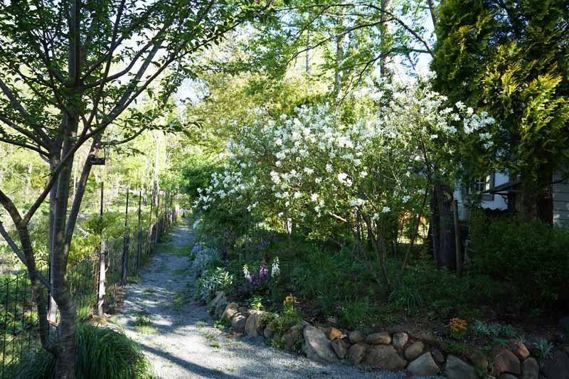 西の奥庭、未だ大型の花が立ち上がってこないこの頃は宿根フロックスなど背の低い花々が我が世を謳歌している。 5/3日