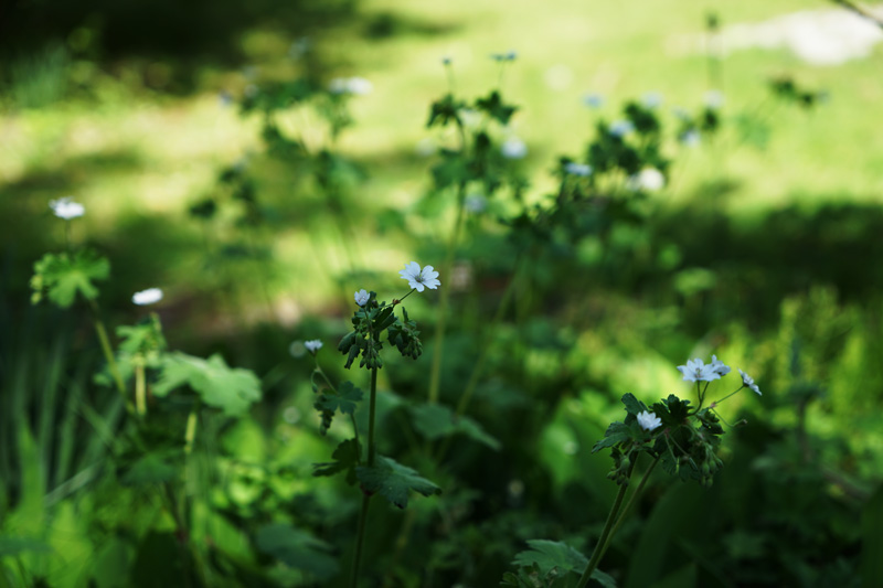 草丈の高い花が群れているこの辺り(西庭奥)で負けずに首を伸ばして咲くアストランティア・マヨール。学名:Astrantia major セリ科 宿根草 6/20日