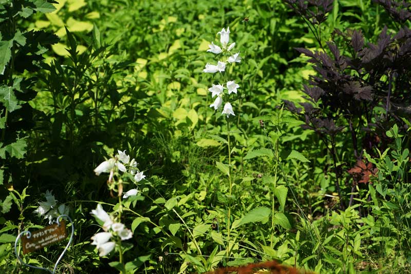 ホタルブクロの仲間、カンパニュラ・マクランサ "アルバ" Campanula latifolia var.macrantha "Alba" 周りの大型の花たちにちょっと面食らっているのか、未だ地歩を固められない余所者。 6/26日