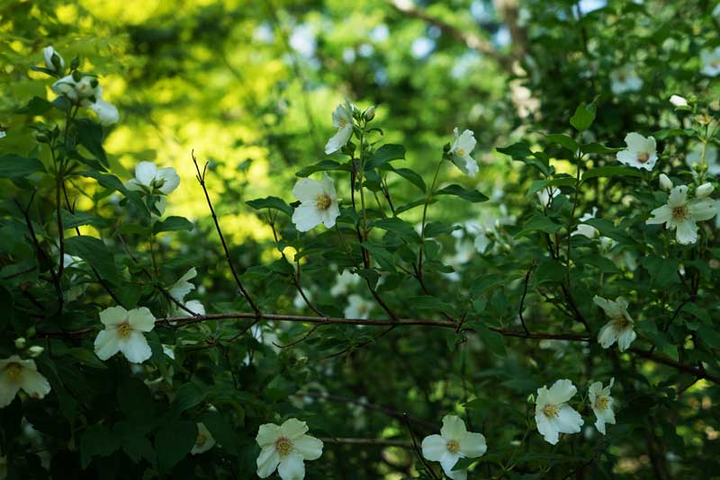 西庭への木戸脇でいい薫りを放つバイカウツギ。 6/26日